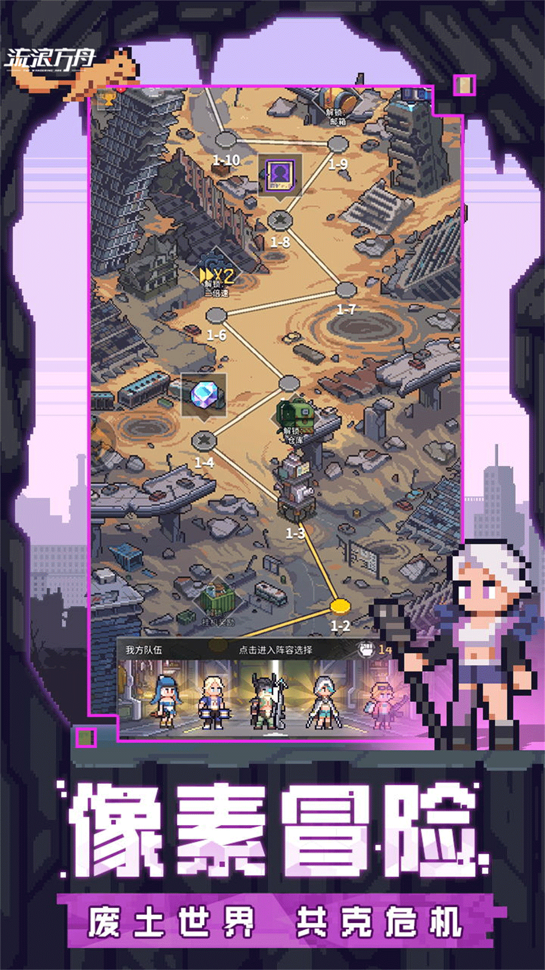 流浪方舟是一款基于物理碰撞玩法,像素废土风格的回合策略游戏,融合了像素蒸汽朋克风和废土题材,玩家作为舰长驾驶一个巨大的移动钢铁家园“流浪方舟号”,在荒原上游荡,救助招募英雄,对抗威胁,重建文明。 游戏的核心玩法是模拟物理碰撞,玩家操控英雄冲撞敌人造成伤害,每个单位都有拟真的物理属性,用类似桌球碰撞的方式战斗,但是这些桌球变成了可爱的像素英雄,拥有各自花里胡哨的技能,可以用各种骚操作配合秀敌人一脸。